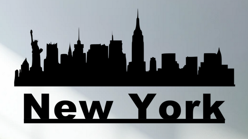 Silhouette da parete città di New York con scritta separata, realizzata in stampa 3D nei nostri laboratori.