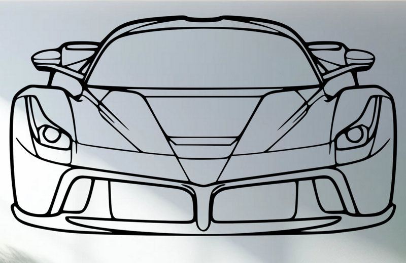 Silhouette da parete Ferrari “La Ferrari” vista anteriore, realizzata in stampa 3D nei nostri laboratori.