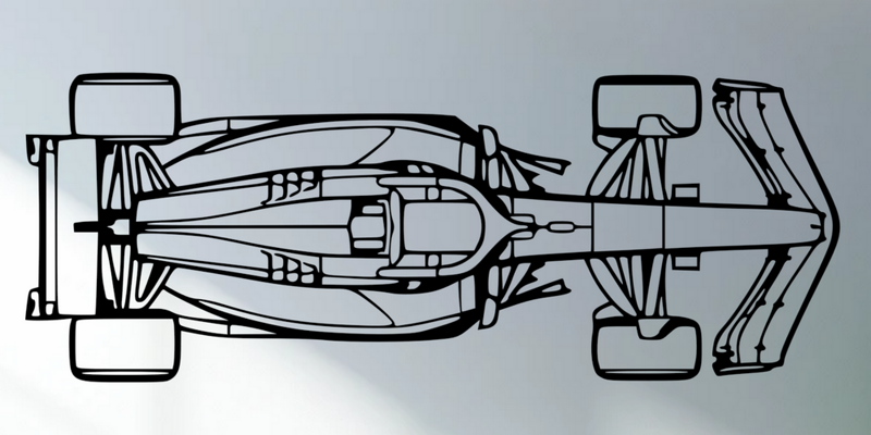 Silhouette da parete Formula 1 2025 vista superiore, realizzata in stampa 3D nei nostri laboratori.