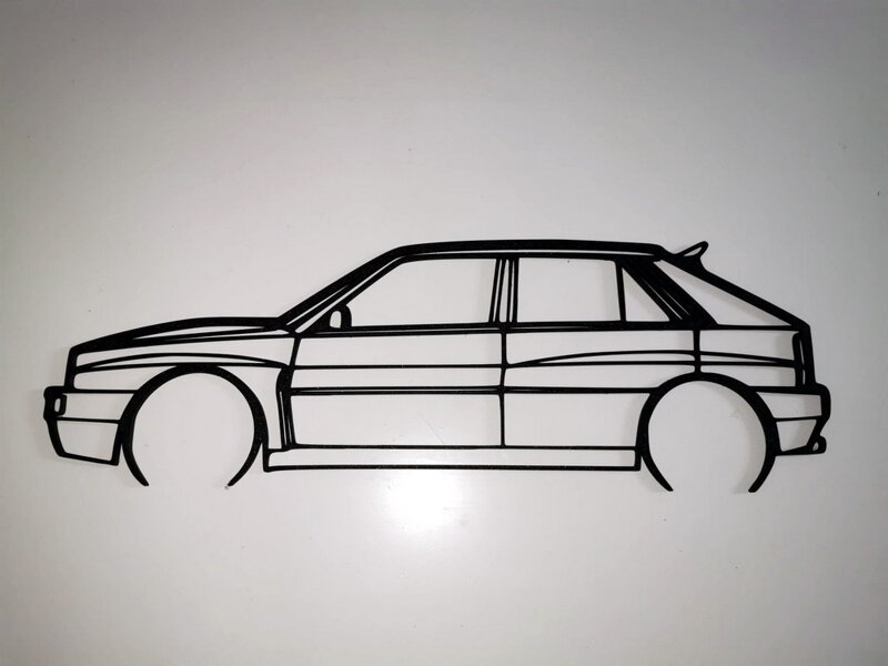 Silhouette da parete Lancia Delta HF Evoluzione Evo vista Laterale, realizzata in stampa 3D nei nostri laboratori.
