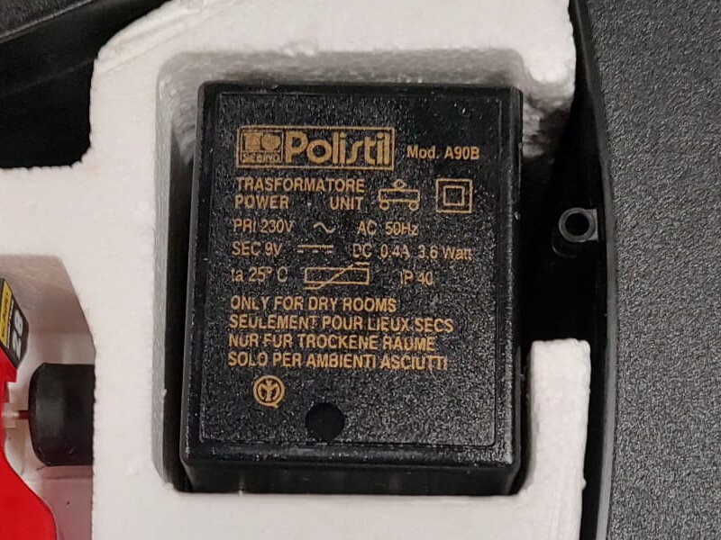 Alimentatore originale Polistil, verificato e testato nella sua funzionalità nei nostri laboratori. Alimentatore usato o d'epoca. Potrebbe avere qualche segno del tempo ma vi arriverà perfettamente funzionante. Se necessiti anche del cavetto di connessione con la pista originale, clicca sull'indirizzo sopra l'immagine in fondo alla descrizione.
