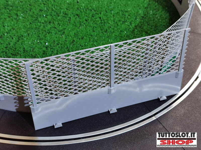 Barriere a rete per pista in scala 1:32. Gli attacchi sono perfetti per piste Ninco e Scalextric. Fatta in un solo pezzo, risulta estremamente elastica ed utilizzabile in ogni raggio di curva o rettilineo. Data la sua elaticità riesce ad assorbire i colpi più duri delle auto. Vengono vendute in confezioni da 5 pezzi. Ogni rete misura 19x10cm. Progettato e realizzato in stampa 3D nei nostri laboratori.