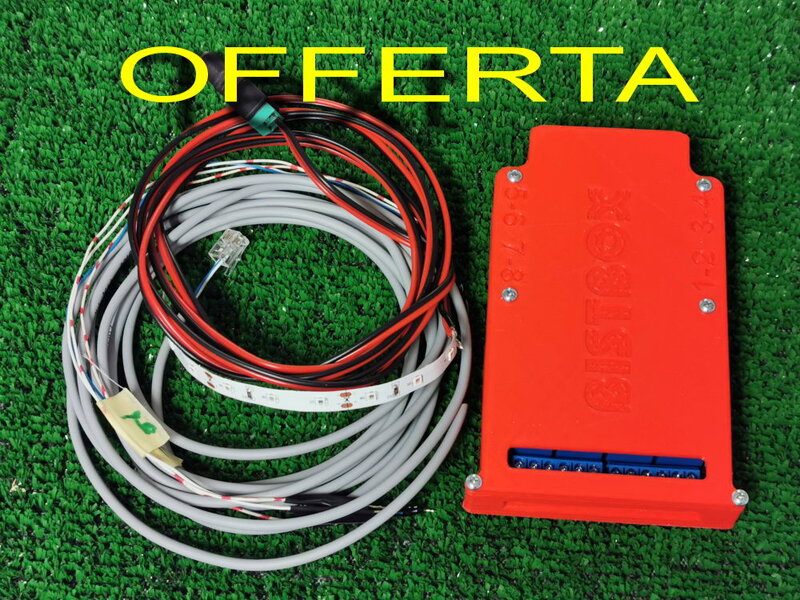 Seleziona la tendina in basso per sceglierlo in kit o montato dai nostri tecnici Select the drop-down menu to choose it in kit or assembled by our techniciansCronometraggio slotcar. Kit completo per 4 corsie con sensori LED e strip led ad infrarossi per illuminare i sensori. Tutto il sistema pronto all'uso. Il kit comprende: kit Bistbox 2-4-6 corsie; 4 sensori rilevamento da posizionare sotto la pista; kit cavo connessione sensori Bistbox; Modulo Arduino con software precaricato e sblocco software Bistlap; Modulo 4 relè 10A; Strip Led 35 cm. Non presente nel kit: Ponte per installare la strip led, alimentatore per strip led e cavo usb per connessione pc-bistbox. Slotcars timekeeper. Complete kit for 4 lanes with LED sensors and infrared led strip to illuminate the sensors. The whole system is ready for use. kit includes: 2-4-6 lane Bistbox kit; 4 detection sensors to be positioned under the track; Bistbox sensor connection cable kit; Arduino module with preloaded software and Bistlap software release; 4 relè module 10A; Led strip 35 cm. Not included in the kit: Bridge to install the LED strip, power supply for the LED strip and