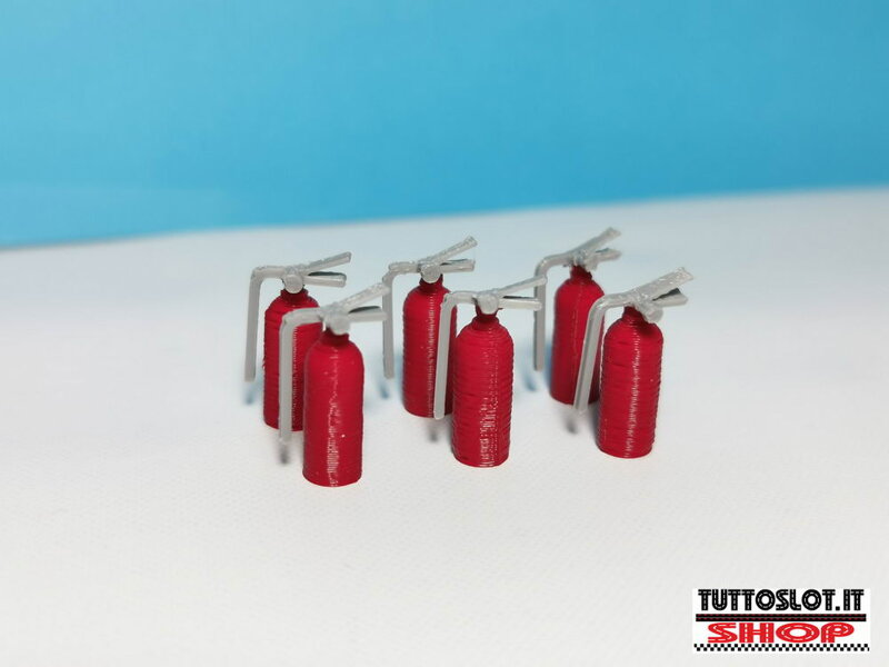 Estintori per diorama in scala 1:32. La confezione è composta da 6 estintori delle dimensioni di: 18 mm di altezza. Ottimo per arricchire il tuo diorama. Progettato e realizzato in stampa 3D nei nostri laboratori.