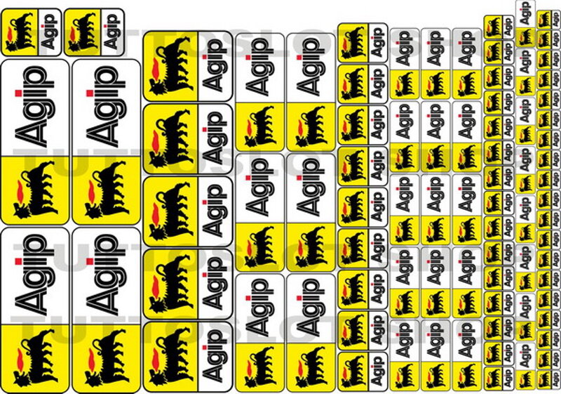 Foglio A4 di vinile adesivo lucido con logo AGIP. Ottima adesione su ogni superficie vista la morbidezza del foglio. Visivamente molto bello perchè lucido in superficie. I loghi non sono tagliati. Basterà usare un cutter o forbici per tagliare i loghi ed inserirli nel diorama della vostra pista. I loghi inseriti sono in diverse misure, per meglio adattarli alle varie superfici della tua pista e auto. Se non trovi il logo che desideri o se vuoi stampare il tuo logo, contattaci.