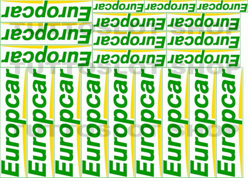 Foglio A4 di vinile adesivo lucido con logo EUROPCAR. Ottima adesione su ogni superficie vista la morbidezza del foglio. Visivamente molto bello perchè lucido in superficie. I loghi non sono tagliati. Basterà usare un cutter o forbici per tagliare i loghi ed inserirli nel diorama della vostra pista. I loghi inseriti sono in diverse misure, per meglio adattarli alle varie superfici della tua pista e auto. Se non trovi il logo che desideri o se vuoi stampare il tuo logo, contattaci.
