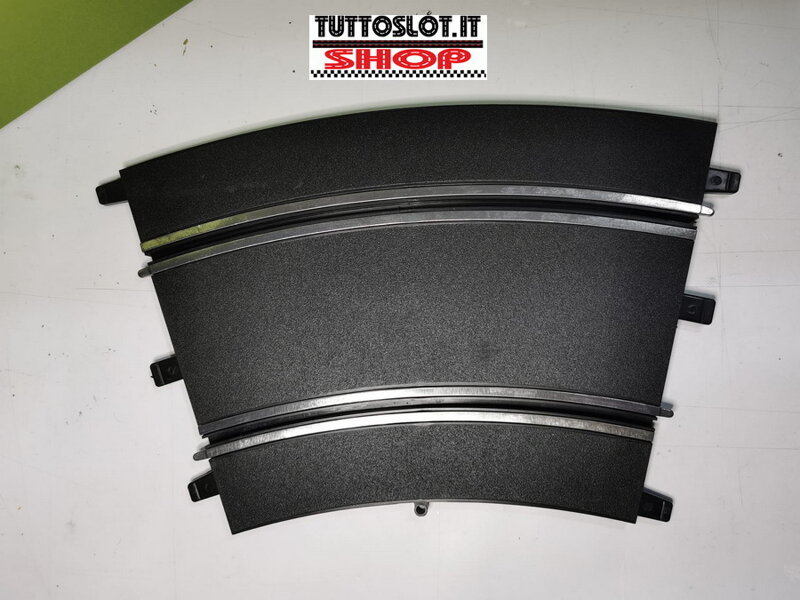 Rare piece! Polistil 30° external curve Code A14. Excellent for 4-lane tracks (mounted outside the standard curve) or for having a wider curve than standard. Also widely used to complete a 90° bend combined with a standard bend. New or finely restored piece. Perfectly working and guaranteed in its functionality. Excellent for lengthening and/or modifying your Polistil track. It should be noted that the pieces were produced between the 70s and 90s and there are no pieces produced more recently. Therefore, even the new piece may have a slightly dark metal part in some parts.