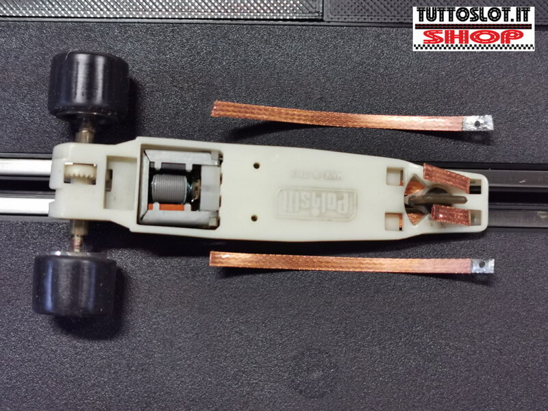 Polistil replica car copper braids HP and Evolution models. The braids are 7cm long each and have a hole for the fixing screw. Excellent for all Formula One, Can Am and Rally models. Produced in our laboratories and reproducing the exact original brushes. The copper braids is the most advanced for improving car performance. The copper braids are sold in packs of 2 pieces.